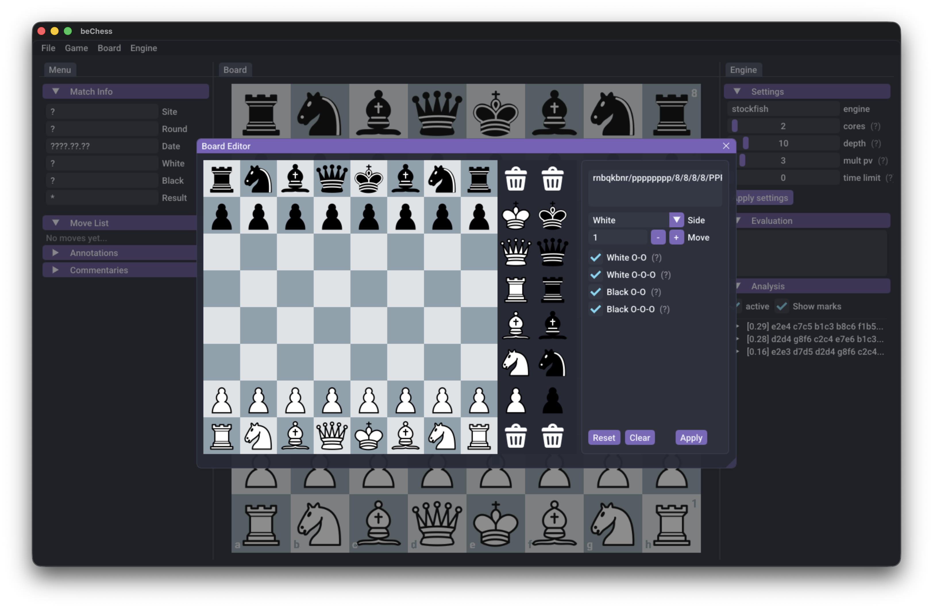 You can now open the Board Editor and visually build custom position to instantly jump into analysis. It’s perfect for setting up puzzles, studying positions from books or videos, or reconstructing over‑the‑board games.